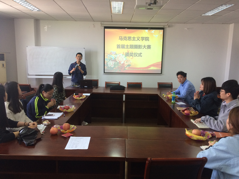 5月9日下午,我院首届学生主题摄影大赛,在明德楼413举行颁奖仪式。参加本次活动的有马院全体研究生,并邀请副院长陶然老师作为特约嘉宾,现场观摩和指导。