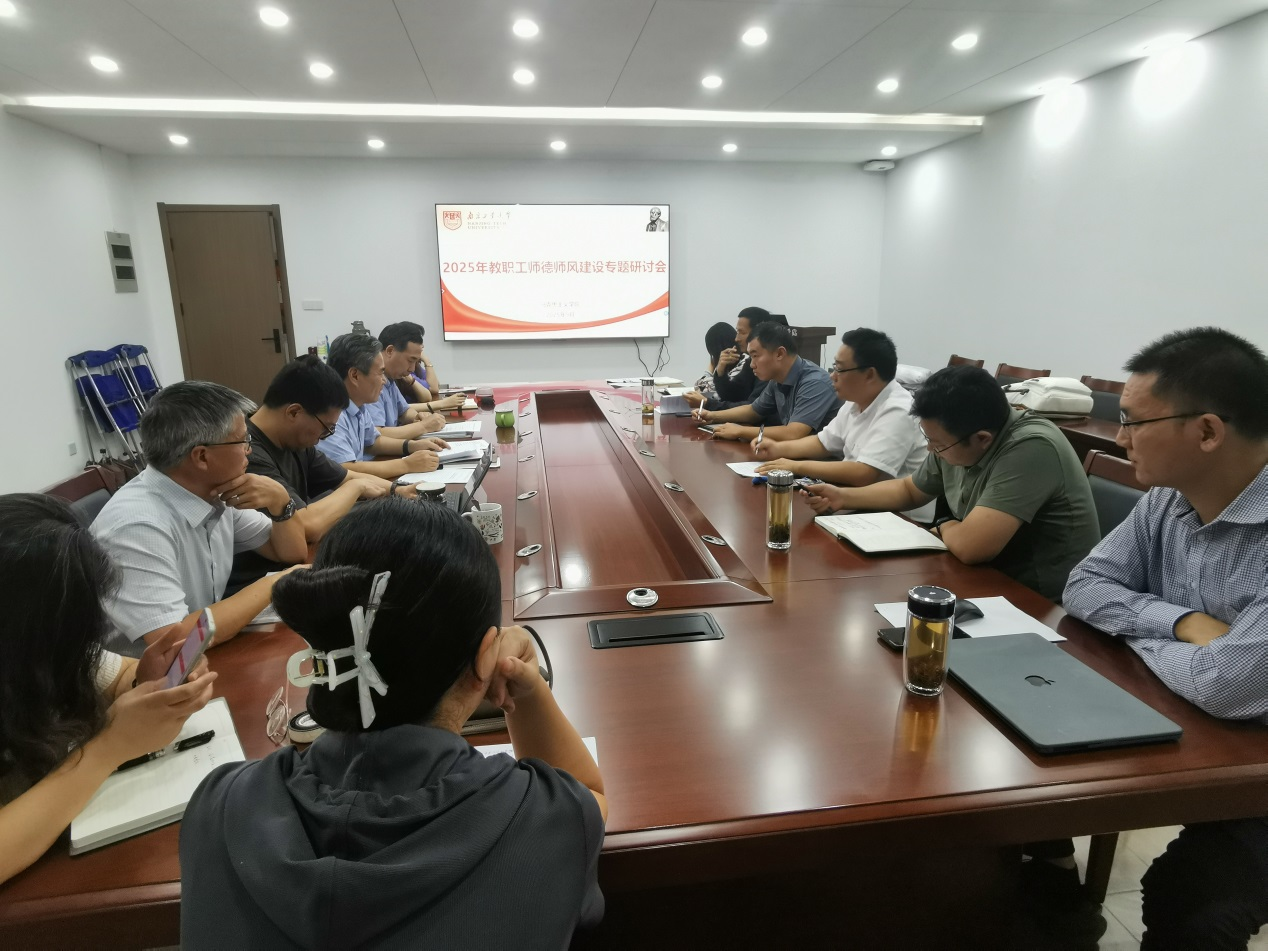 会议传达学习《南京工业大学2025年教职工思想政治和师德师风教育计划》文件精神,结合学院实际,从专题学习教育、警示教育、实践教育以及教职工思想动态摸排等方面对本年度学院教职工思想政治和师德师风教育工作作出具体部署安排。