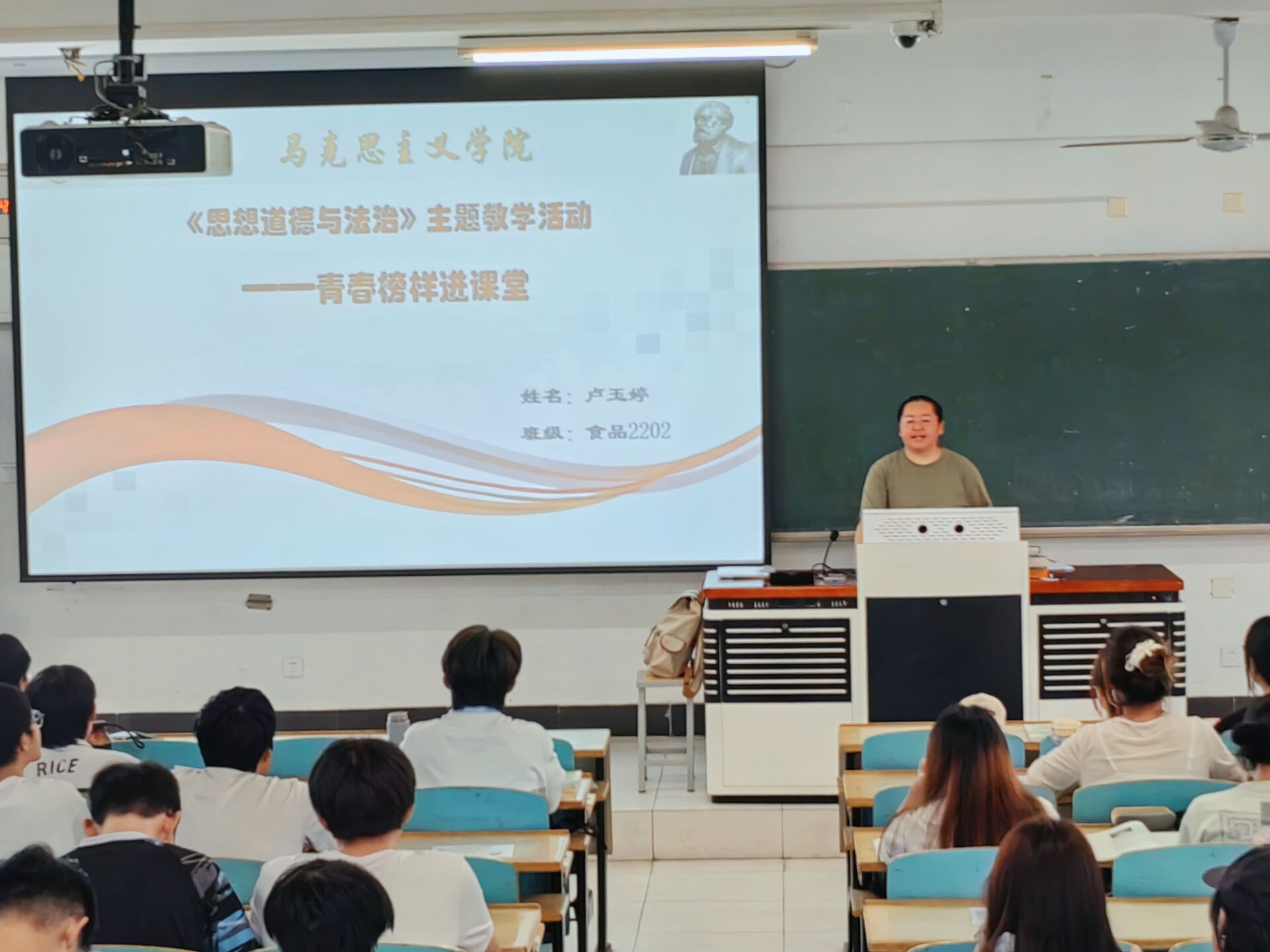 为贯彻落实《教育强国建设规划纲要(2024—2035年)》,发挥朋辈教育引领作用,10月份,马克思主义学院与党委学生工作部联合举办“青春榜样进课堂”主题教学活动。