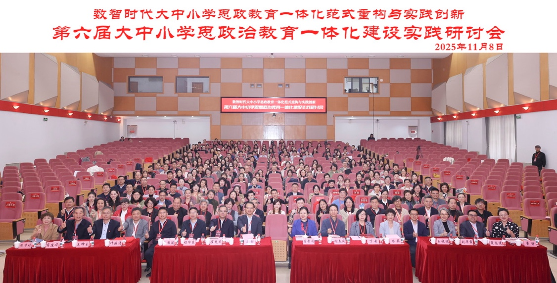 本次研讨会聚焦“数智时代大中小学思政教育一体化范式重构与实践创新”主题,深入贯彻党的二十届四中全会及全国教育大会精神,由全国大中小学思政课一体化建设实践研究共同体、中国人生科学学会教育与健康工作委员会指导,上海大学马克思主义学院、北京教育科学研究院德育研究中心、北京工业大学马克思主义学院、北京市东城区教育科学研究院主办,上海大学附属中学承办,来自全国各地的专家学者、教育管理者及一线教育工作者300余人汇聚一堂,共探思政教育一体化创新路径。
