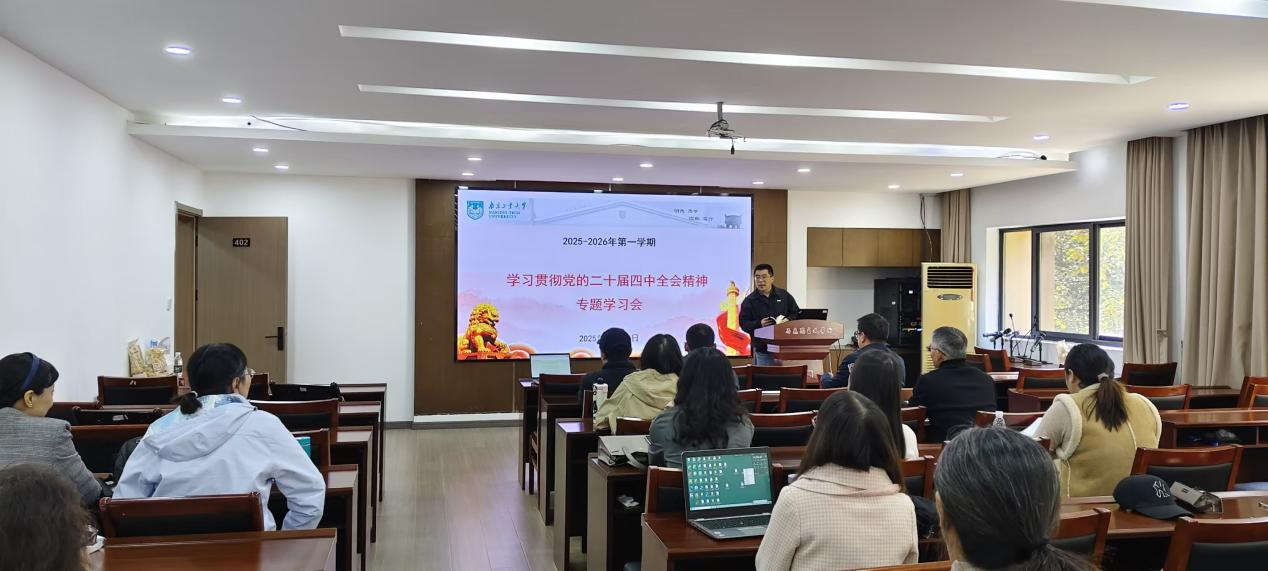 首先,宣传委员王巍老师领学了中国共产党第二十届中央委员会第四次全体会议公报、关于《中共中央关于制定国民经济和社会发展第十五个五年规划的建议》的说明。随后,李永老师传达了2025年11月9日学习贯彻党的二十届四中全会精神中央宣讲团报告会精神。最后,与会教师党员们结合自己的工作实际,围绕全会精神展开了深入交流。大家一致表示,要立足教书育人本职,牢记为党育人、为国育才的初心使命,以全会精神为指引,不断提升自身政治素养、业务能力,在人才培养、学科发展、科研攻关、社会服务等方面发挥先锋模范作用,为学校、学院事业高质量发展贡献力量。