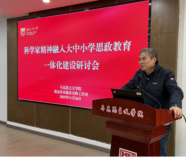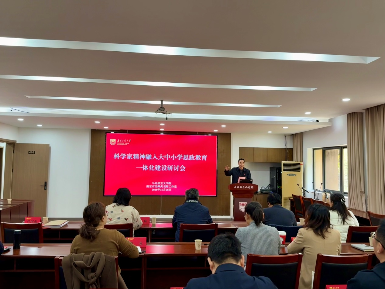 11月27日,“科学家精神”融入大中小学思政教育一体化建设研讨会在我校马克思主义学院召开。南京工业大学、江浦实验小学、浦口实验学校、南京科技职业学院马克思主义学院等江北新区大中小学思政课一体化建设联盟成员单位领导、马克思主义学院负责人、思政课教师及有关人员参加会议。研讨会由我校马克思主义学院院长眭国荣主持。