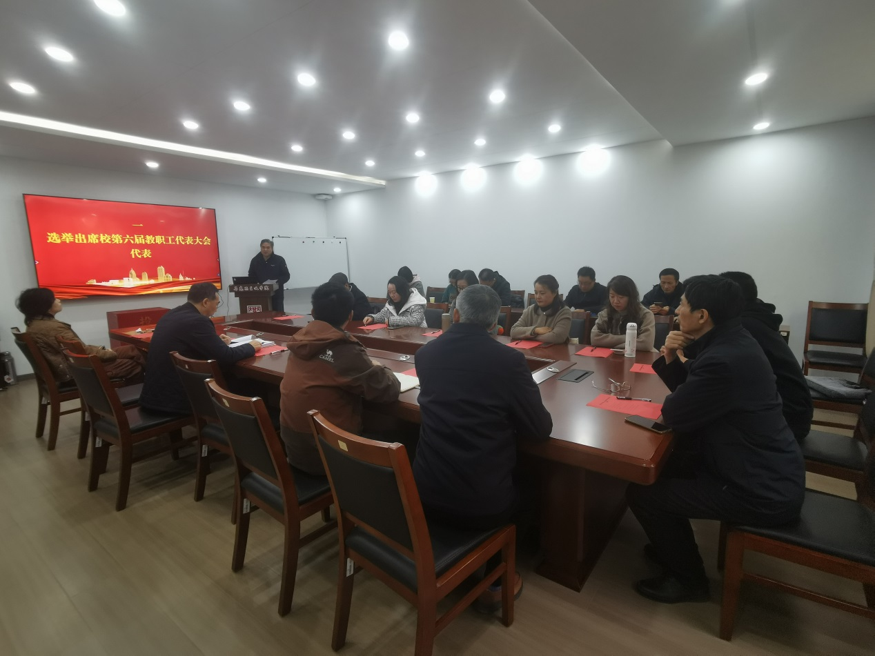 张振海书记首先传达了学校关于筹备召开第六届教职工代表大会、工会会员代表大会第一次会议的通知文件精神,介绍了学院两代会代表候选人酝酿推荐过程。随后,全体参会代表严格按照程序,顺利选举产生出席校第六届教代会、工代会代表。