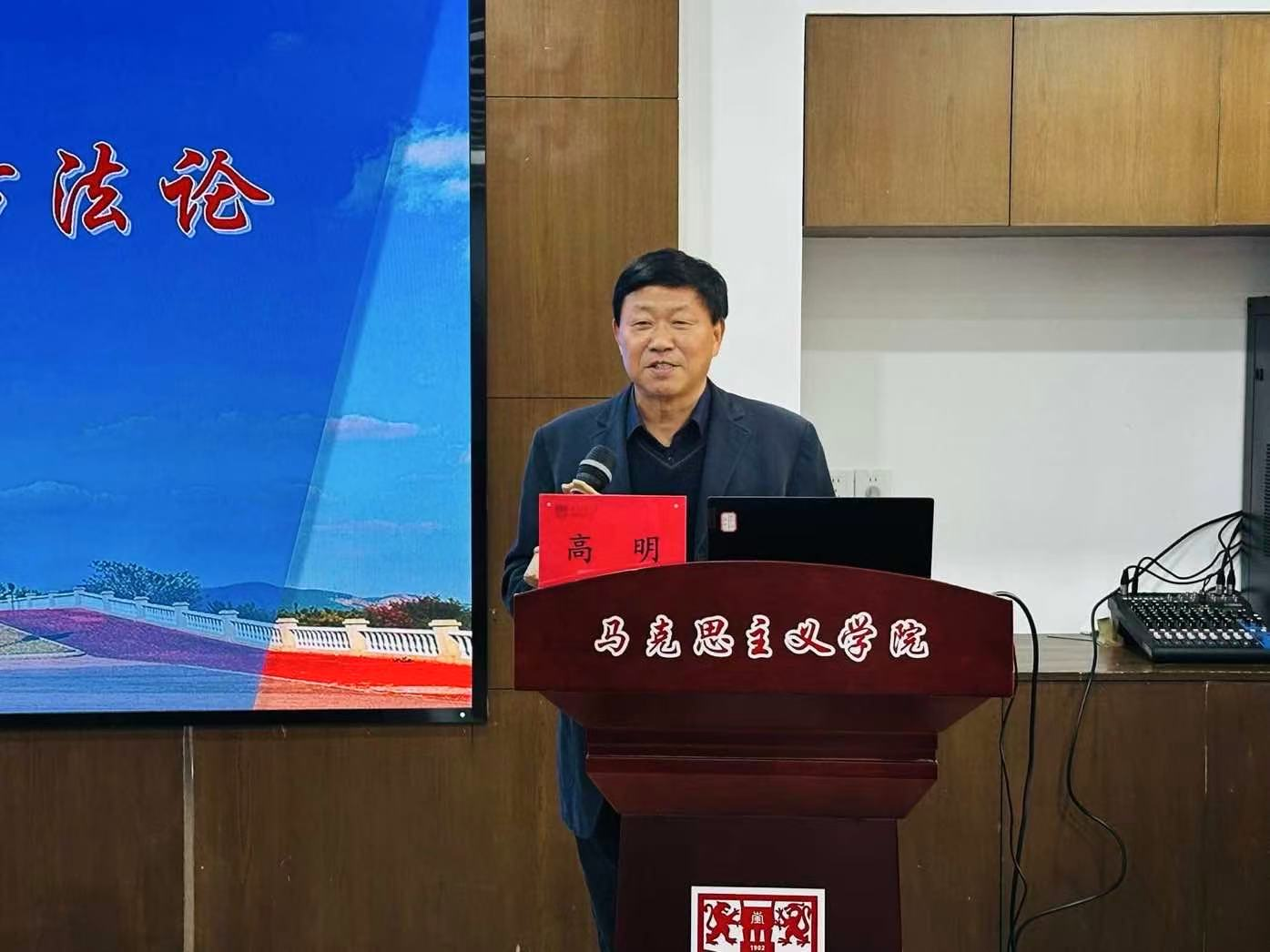 为进一步提高学生认识问题和分析问题的能力,推动马克思主义理论与学生学习、工作和生活相结合,12月11日上午9点半,在笃学402会议室,学院特邀校关工委常务副主任、原校党委副书记副校长高明,为学生们带来讲座“学习和工作中的方法论”,讲座由学院党委书记张振海主持,2023、2024级全体研究生参加了讲座。