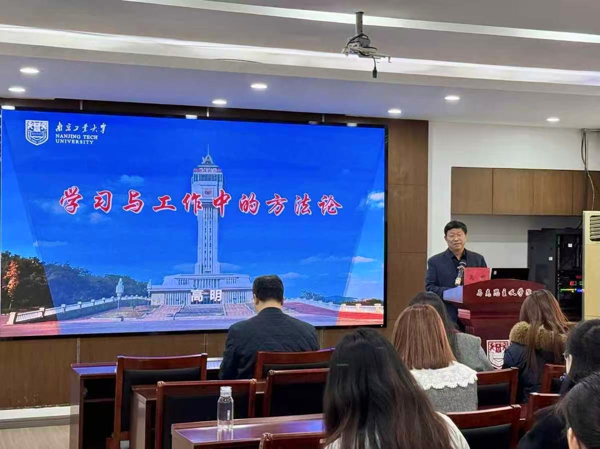 高明书记围绕辩证唯物主义与方法论、历史唯物主义与方法论和几种实用的工作方法,结合丰富案例展开讲座内容。在辩证唯物主义部分,他阐释了对立统一规律启示下的“抓重点、统筹兼顾、把握矛盾特殊性”,质量互变规律强调的“重视量变的过程,抓积累、防渐变”,以及普遍联系规律倡导的“重视普遍联系,系统看待问题”;在历史唯物主义部分,他提炼出“尊重历史、尊重现实、尊重群众”的核心启示,强调实事求是与人民至上的重要意义。结合多年工作实践经验,高书记分享了个人总结的方法与工作原则。他提出个人发展四方面的现实路径,即需具备良好习惯、科学方法、综合素质与适配能力;工作的分析模式要学会抓住工作对象的特点、工作的重点、工作的切入点;工作的宏观思考要营造氛围、健全制度、培养队伍、丰富载体;同时倡导保持热情、激情、真情的态度,在学习工作中做到围绕中心、突出重点、创新常规等工作方法。